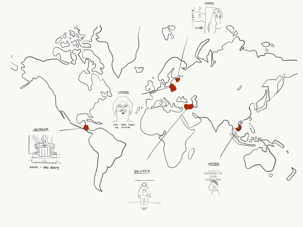 sí, es mío, es un mapa con las canciones más top de cada sitio